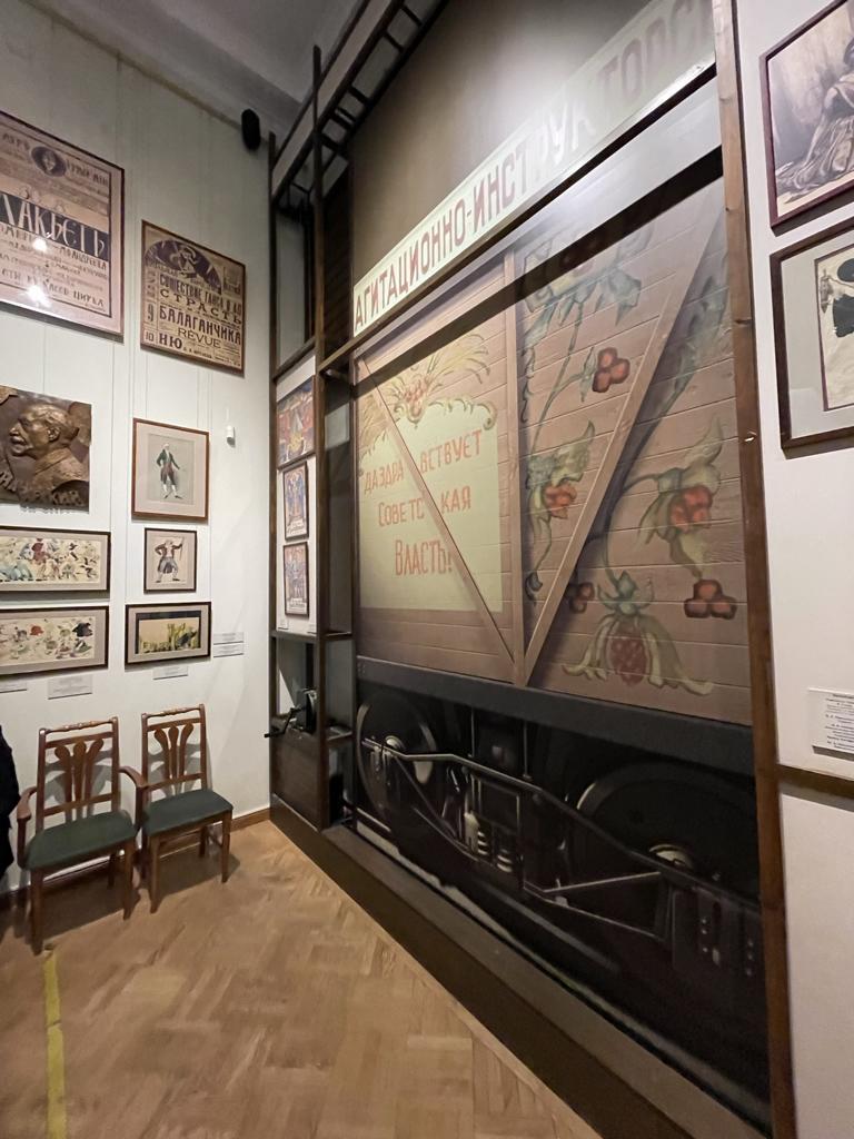 Внимание привлекла витрина с пуантами известных балерин: Ульяна Лопаткина и Диана Вишнёва — уже история, и я счастлива, что в списке из девятнадцати имён нет ни одного, не знакомого мне: это мой мир, хоть я и знаю его много меньше, чем хотелось бы. Фотография Ольги Спесивцевой в окружении красноармейцев тоже отпечаталась в памяти — я долго смотрела на неё.