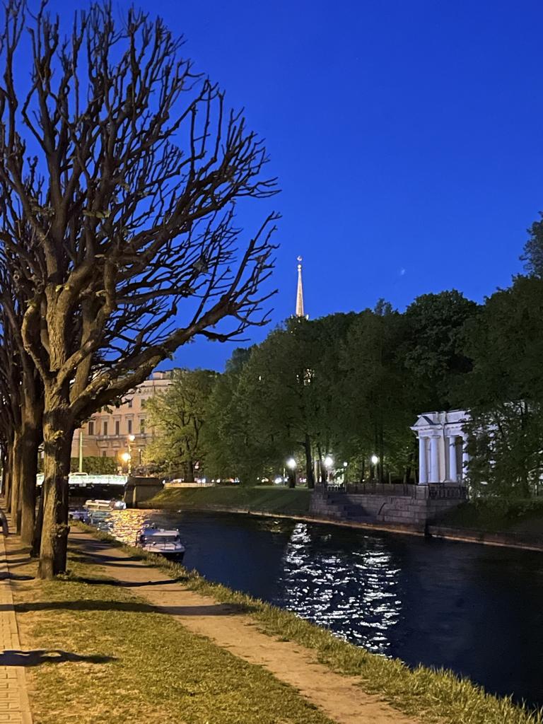 Тёплый майский вечер в преддверии белых ночей очарователен; упоителен аромат сирени на площади Островского и Царицыном лугу; таинствен погруженный в темноту Михайловский сад; изредка загадочно поблёскивает между деревьев и фигурных оград чернеющая вода; в нем нет фонарей и освещённых дорожек, нет императорского лоска парадного Петербурга.
