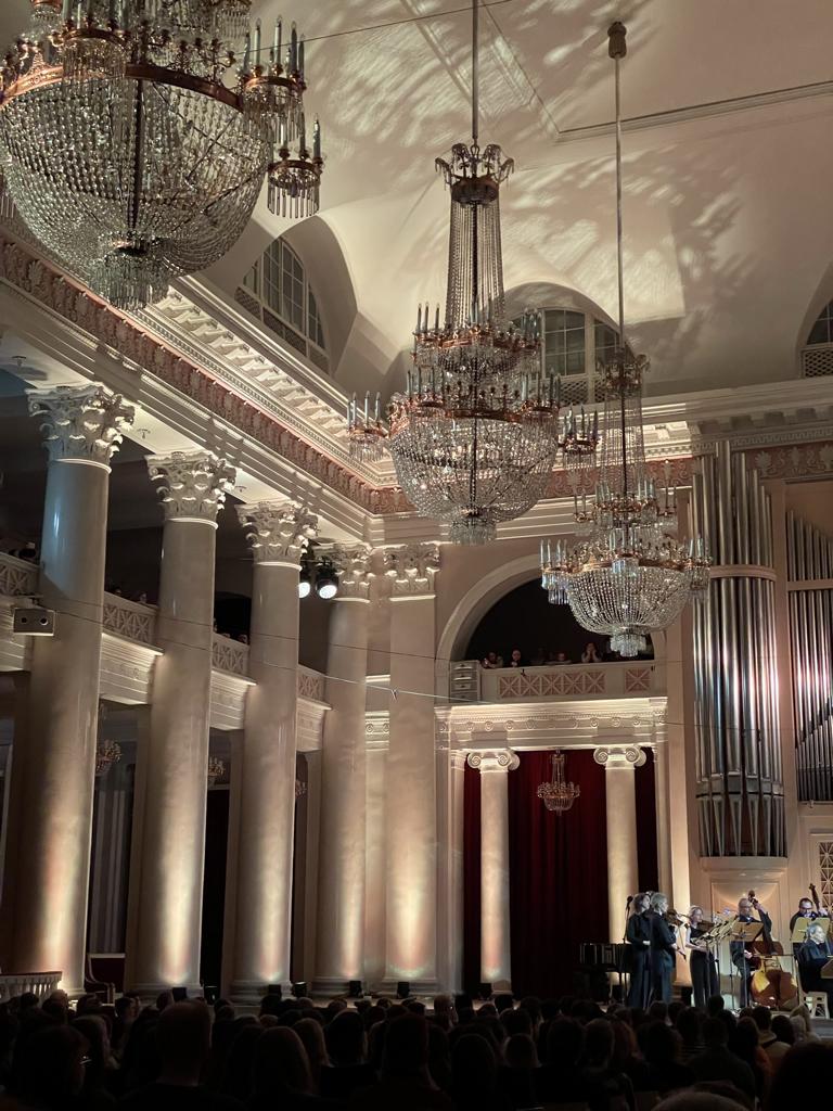 Зал Дворянского собрания преображается к полуночи: Вивальди/Макс Рихтер были отправной точкой всей программы и они стали прекрасным завершением вечера: струнный ансамбль может звучать ультра-современно и нести драйв. И хотя барочный Вивальди мне роднее постминималистского Рихтера, это интересно слушать.
