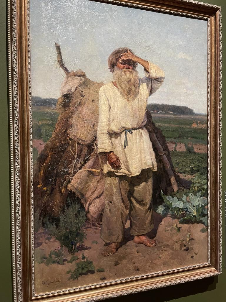Можно было бы все списать на манеру художника, но испанские и итальянские акварели прозрачны и воздушны, солнечны и легки; Петербург сумрачен, но светел; непарадные портреты написаны с домашней непосредственностью; в ногах старика-огородника свежая капуста. Этот малоизвестный Суриков показался мне, не большому поклоннику его живописи, гораздо интереснее и ближе, но в знаменитых работах поражает ошеломительная правдивость образов, которую упрямо не желают признавать привыкшие считать себя потомками славян.