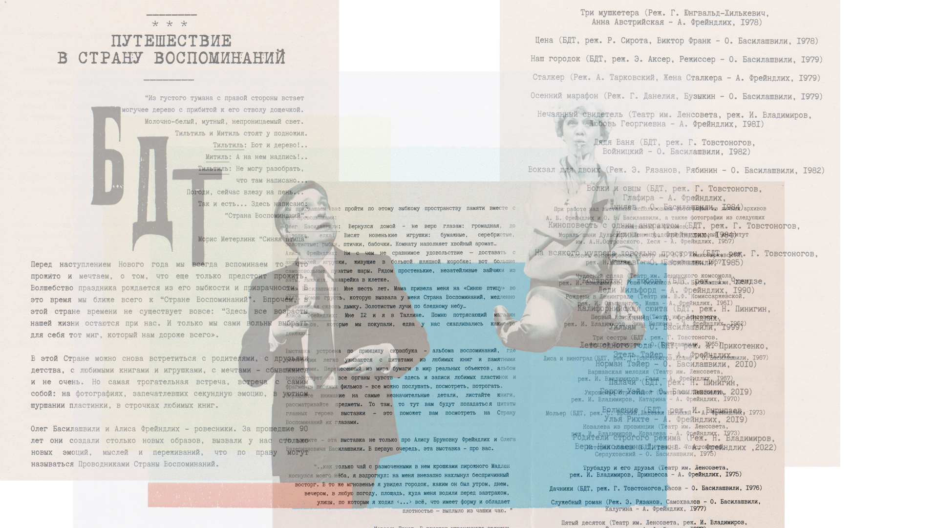 Это очевидно из миниатюрной выставки, организованной в фойе театра по случаю круглых дат: крохотная экспозиция погружает в параллельное пространство-время героев мгновенно, в нём зависаешь и выбраться из него не так-то просто — просто не хочется.