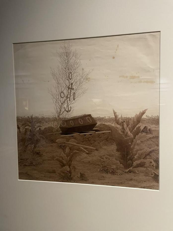 Несмотря на приглушённый свет и полутьму, царящую в экспозиции, что создаёт особенно камерную атмосферу в совокупности с пустынными залами вечернего Эрмитажа, выставка оставляет исключительно светлое ощущение: парадокс романтизма в том, что даже кладбищенский крест и гроб исполнены света.