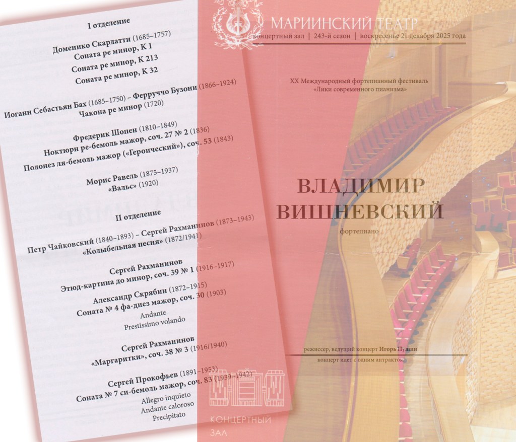 Программа концерта составлена нетривиально: отсутствие в ней популярных произведений для фортепиано — признак уверенности пианиста в себе, его самодостаточности, своего голоса, понимания своего места в музыке и вместе с тем уважения ко вкусам и предпочтениям неслучайной публики (в который раз отмечаю, насколько слушатели Концертного зала Мариинского театра отличаются от аудитории Большого зала Филармонии).
