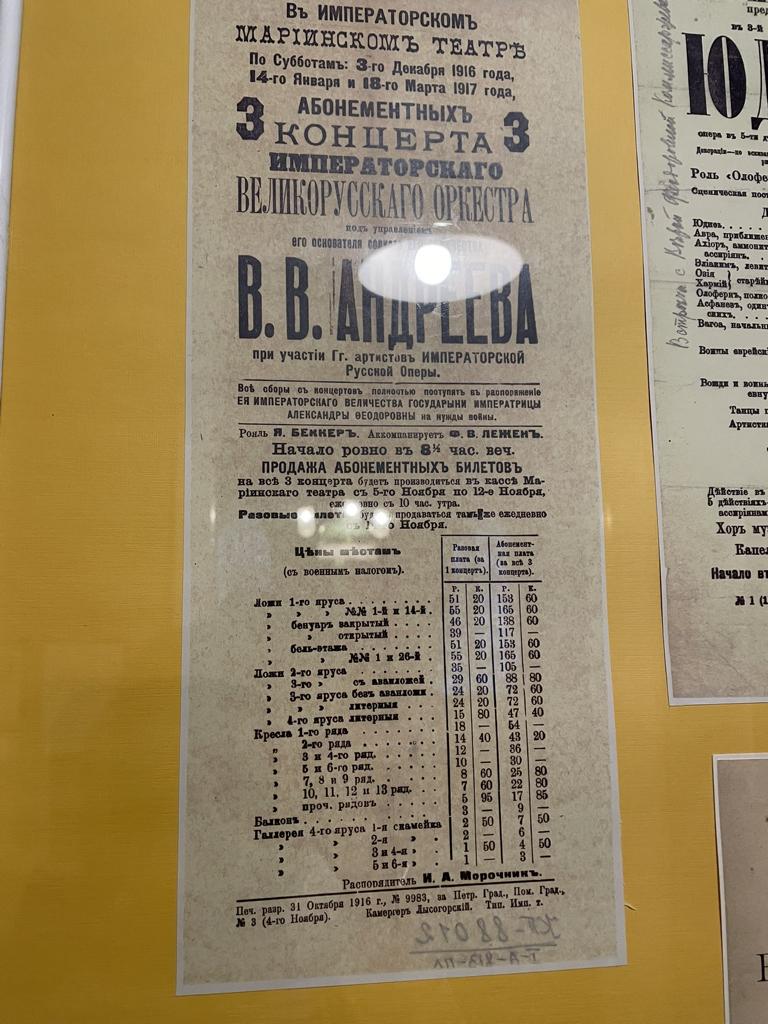 Очень радушные служители, внимательно и ненавязчиво проводящие редких посетителей по извилистому маршруту экспозиции. В музее представлены интерьеры типичных квартир доходных домов конца позапрошлого века, многочисленные произведения типографий, среди которых особое место занимают театральные афиши (рассматривая их, так приятно находить знакомые балетные, оперные, музыкальные, театральные имена). Билеты и цветы любезно распространяют артистки Императорских театров. Первый ярус и бель-этаж — самые дорогие.