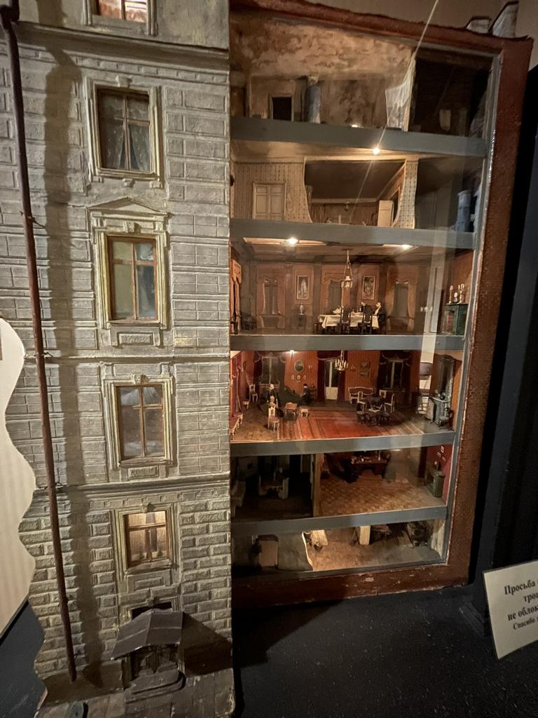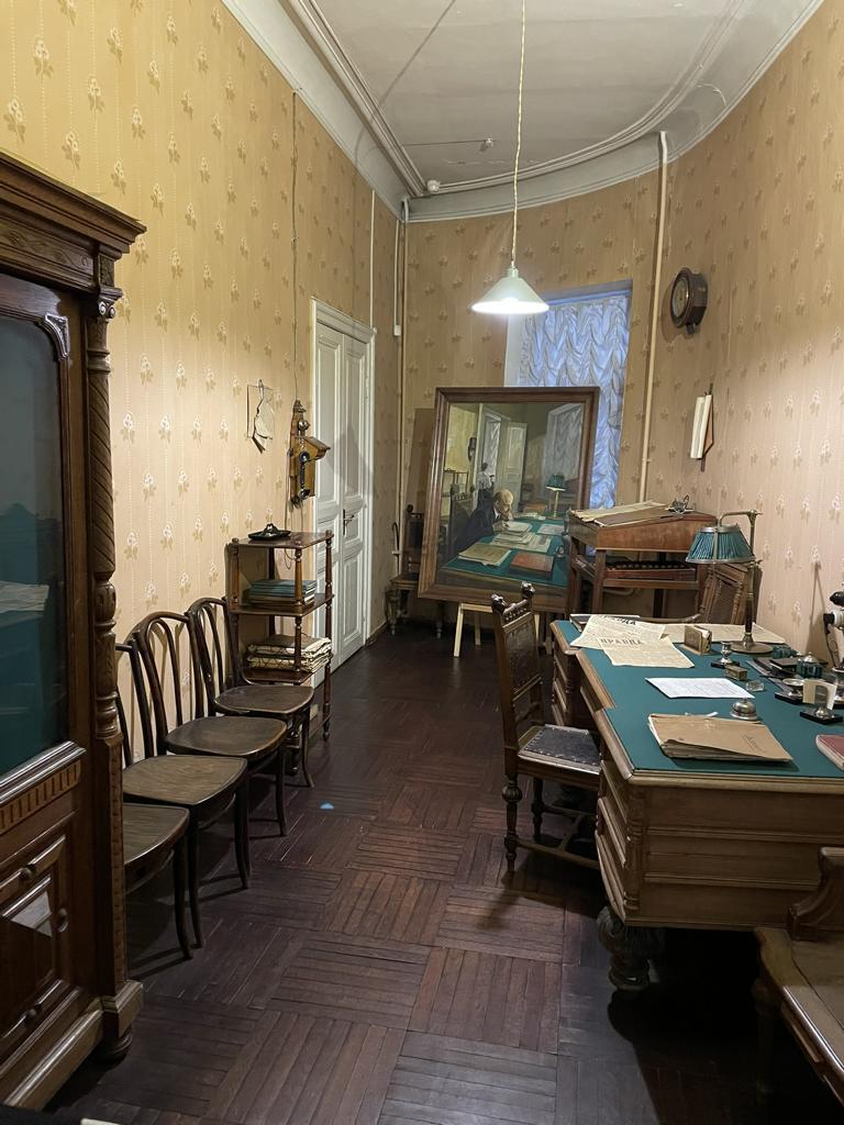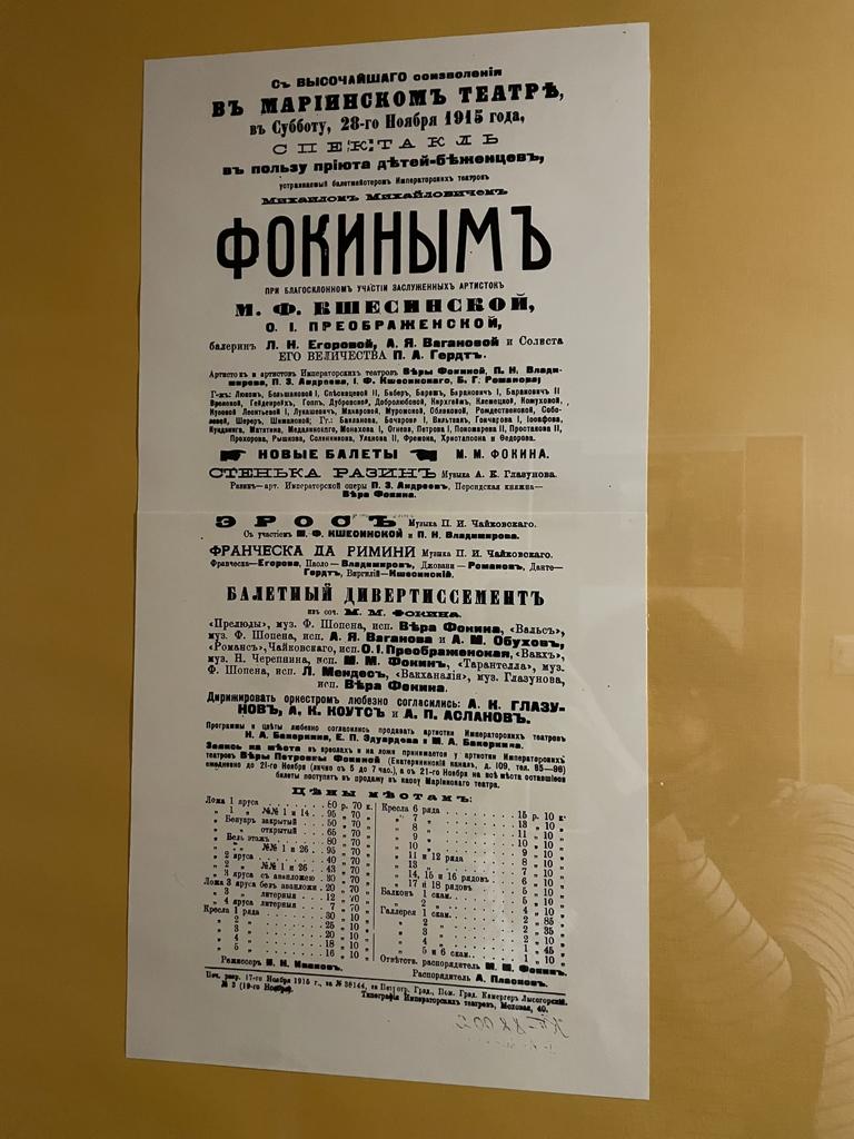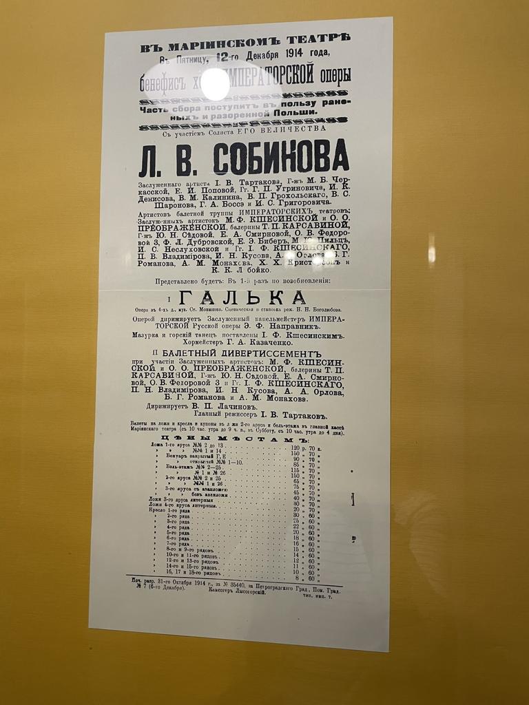 Очень радушные служители, внимательно и ненавязчиво проводящие редких посетителей по извилистому маршруту экспозиции. В музее представлены интерьеры типичных квартир доходных домов конца позапрошлого века, многочисленные произведения типографий, среди которых особое место занимают театральные афиши (рассматривая их, так приятно находить знакомые балетные, оперные, музыкальные, театральные имена). Билеты и цветы любезно распространяют артистки Императорских театров. Первый ярус и бель-этаж — самые дорогие.